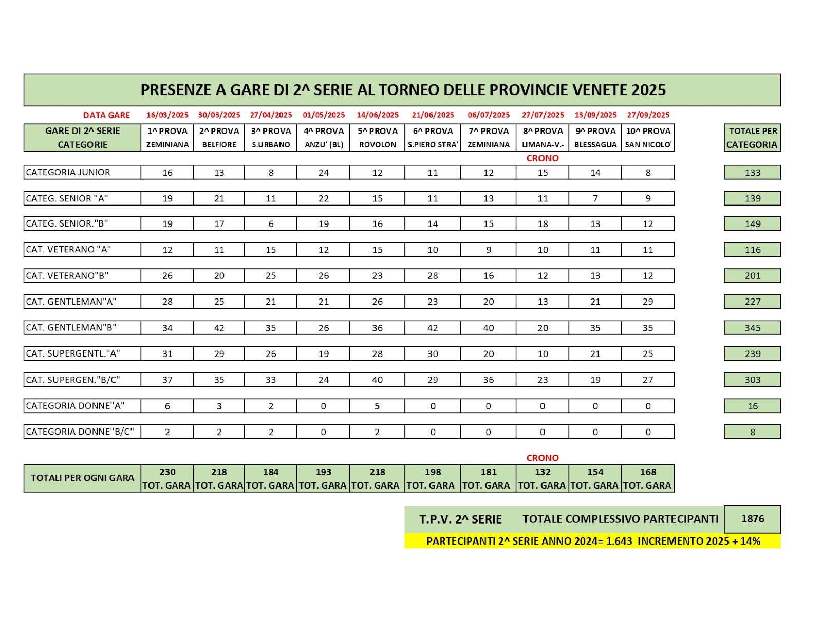 - 2ª Serie: 1.876 partecipanti totali (+14% rispetto al 2024) distribuiti in 10 gare